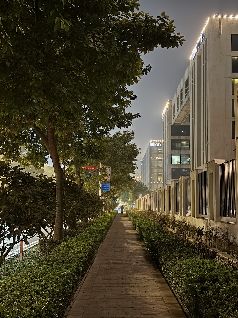 At the center of Aerocity, is a stretch of kind-of-a-park-but-not-quite, a walking-only area, which leads to a shopping mall, with its food court, restaurants and bars. Today is actually Christmas—the first I spend alone. There’s a Christmas market in the park, which feels just like any other Christmas market. The mood is relaxed.