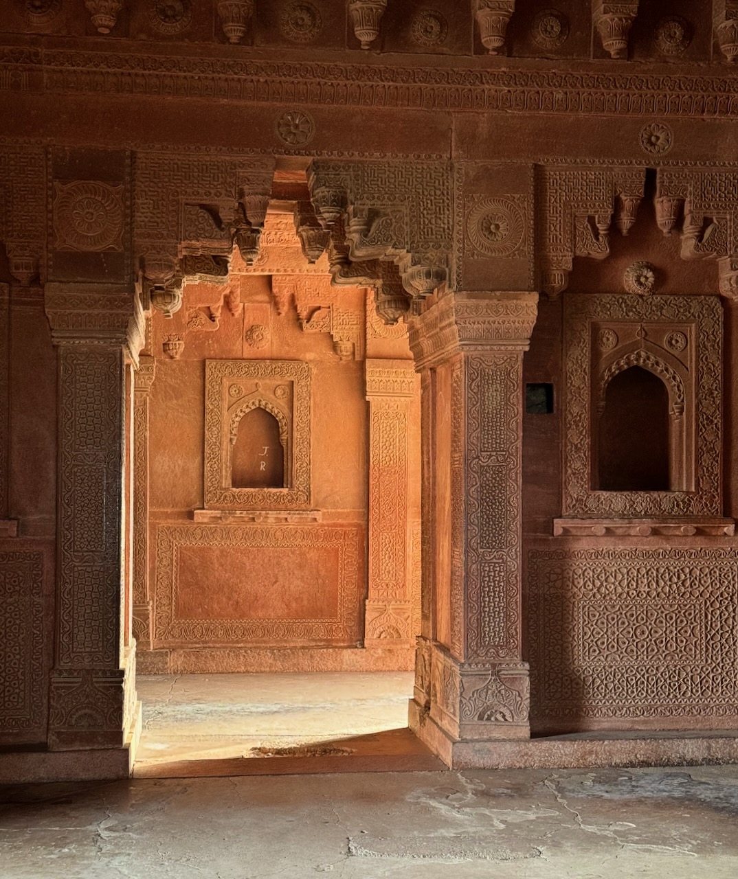 Built in the 16th century, the place is huge1, and filled with tourists—mostly Indians, but also foreigners. I find it quite beautiful and relaxing. There’s no circuit or tour to follow, so our group kind of scatters, and I end up going my own way, enjoying going from court to court and room to room, almost getting lost.